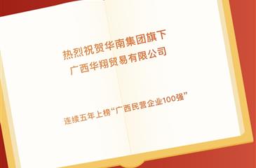 热烈祝贺华南集团旗下广西华翔荣耀入围 “2022广西民营企业100强” 榜单