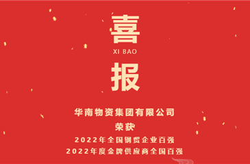 热烈祝贺华南集团荣获2022年全国钢贸企业、金牌供应商全国百强