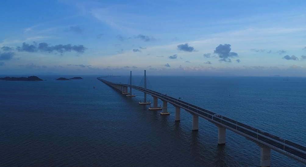 港珠澳大桥于2009年12月15日动工建设;于2017年7月7日实现主体工程全线贯通; 于2018年2月6日完成主体工程验收;同年10月24日上午9时开通运营。港珠澳大桥东起香港国际机场附近的香港口岸人工岛,向西横跨南海伶仃洋水域接珠海和澳门人工岛,止于珠海洪湾立交;桥隧全长55千米,其中主桥29.6千米、香港口岸至珠澳口岸41.6千米;桥面为双向六车道高速公路,设计速度100千米/小时;工程项目总投资额1269亿元。